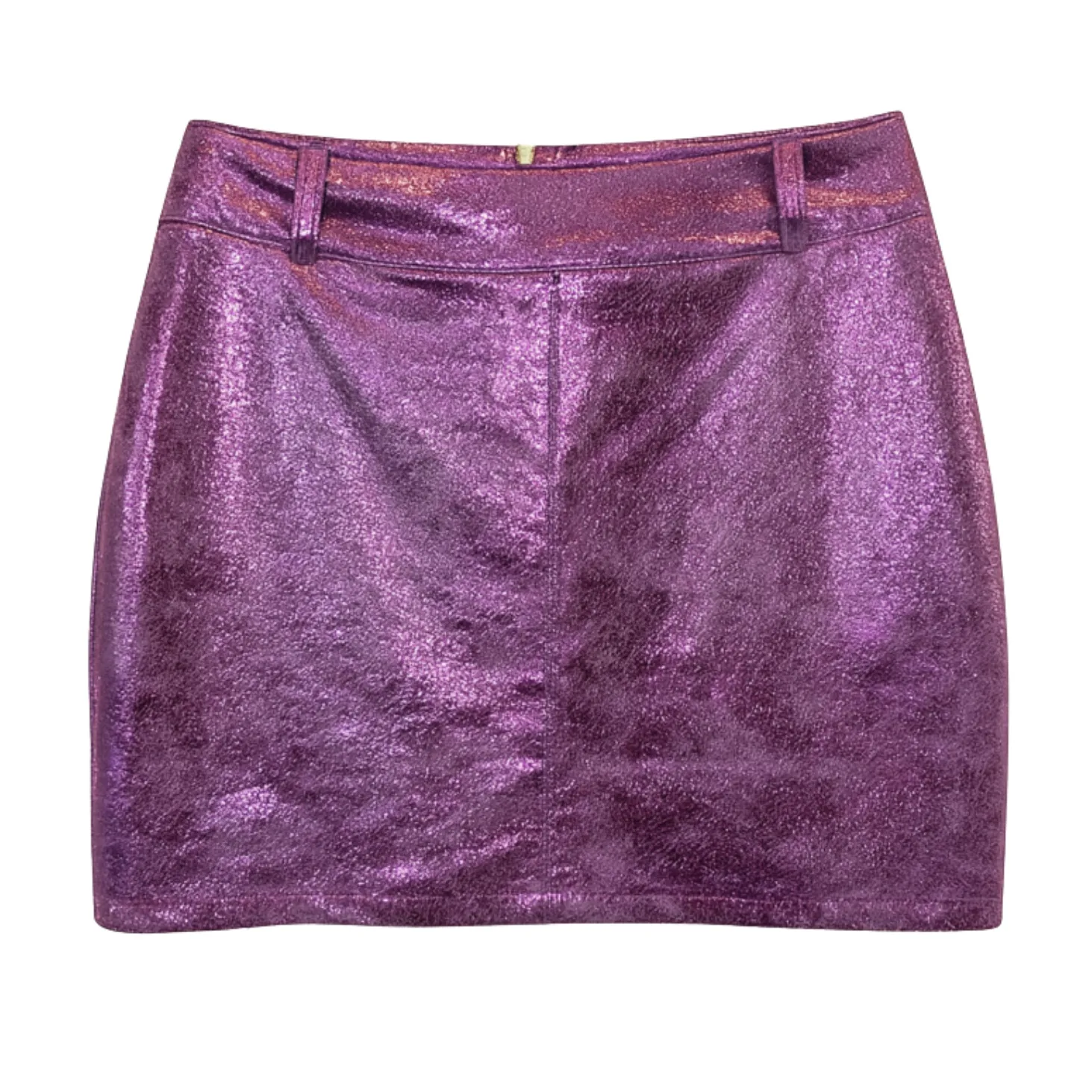 Saia em lurex com brilho, justa, cintura baixa e curta. Peça chave para um look elegante e estiloso.