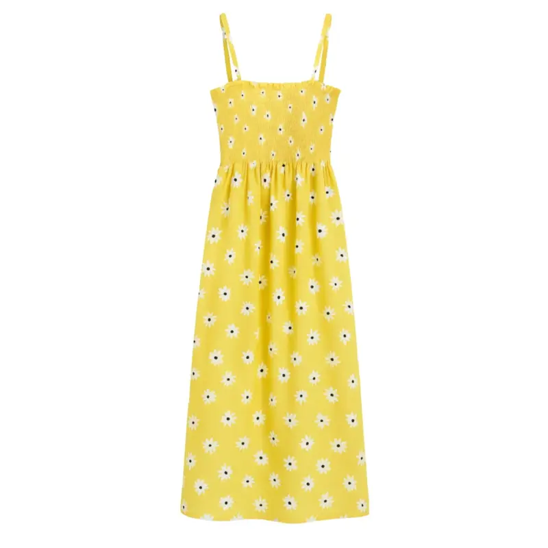 O vestido é confeccionado em tecido algodão, tem uma modelagem de cintura marcada e solto no quadril, com elastec no peito. Portanto vestindo super bem. Peça muito confortável de comprimento no joelho. Além disso, seu corte tomara que caia proporciona um look versátil e estiloso. Contudo é uma ótima peça para quem gosta de estilo e conforto.
